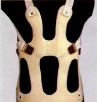 适应症: 固定脊柱于过伸限制脊柱的屈伸、侧屈、旋转,主要用于脊柱术后固定、 腰椎骨折、脊柱结核。 使用说明:为定制产品,按照材料可分为高温和低温两种,根据患者病情选择相应