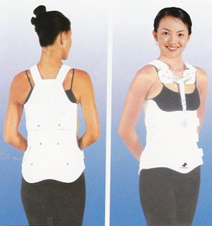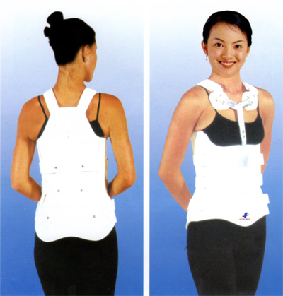适应症: 固定脊柱于过伸限制脊柱的屈伸、侧屈、旋转,主要用于脊柱术后固定、 腰椎骨折、脊柱结核。使用说明:为定制产品,按照材料可分为高温和低温两种,根据患者病情选择相应 材料,低温板材可直接塑型成型、高温板材需要首先在主治医师指导下 取石膏阴型(手术患者可术前取型,手术切口部位适当增加软性材料) 再取型成型、修整、最后制作为成品。