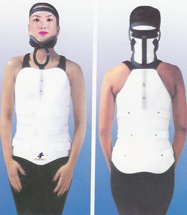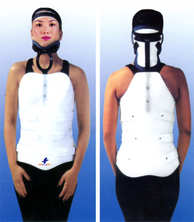 适应症: 固定脊柱于过伸限制脊柱的屈伸、侧屈、旋转,主要用于脊柱术后固定、 腰椎骨折、脊柱结核。使用说明:为定制产品,按照材料可分为高温和低温两种,根据患者病情选择相应 材料,低温板材可直接塑型成型、高温板材需要首先在主治医师指导下 取石膏阴型(手术患者可术前取型,手术切口部位适当增加软性材料) 再取型成型、修整、最后制作为成品。