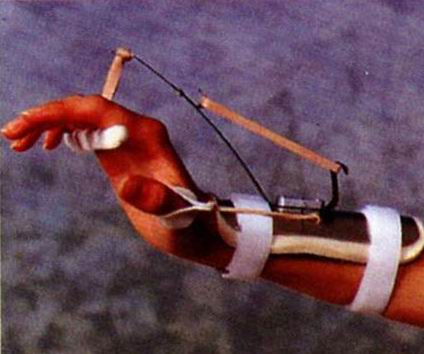 功能:掌指关节主动屈、被动伸;拇指主动屈、被动伸。适用于桡神经麻痹,保持腕关节背伸功能位,并使拇指保持外展位,锻炼腕关节掌侧屈及拇指对掌位。