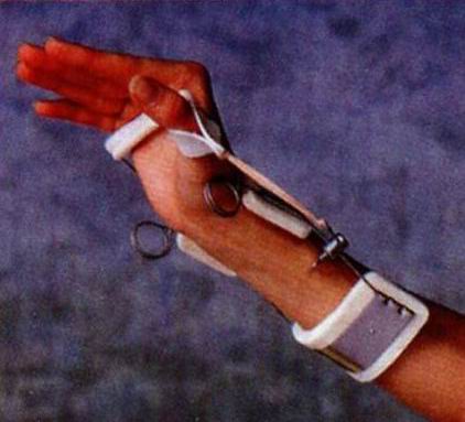 功能:腕关节主动屈、被动伸;拇指主动屈、被动伸。适用于桡神经麻痹时引起的垂腕,锻炼腕关节掌侧屈,拇指对掌位锻炼。