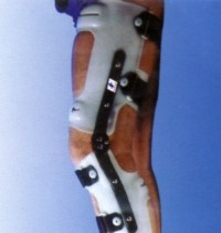 适应症: 用于胫、腓、踝骨术后固定,可早期下地训练。 使用说明:为定制产品,需要完全按照患者的实际情况选用部件进行测量, 取型后再制作成所需产品。